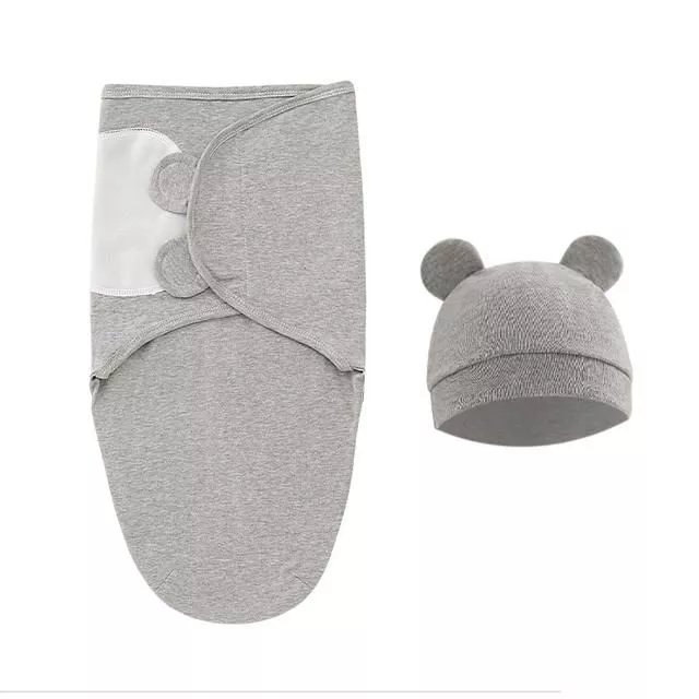 Our adjustable swaddle wrap is ingeniously designed for ease of use, ensuring your little one is snugly wrapped in just a few simple steps. The swaddle blanket provides the perfect amount of stretch, ensuring a secure yet comfortable fit. This innovative design helps to prevent startle reflex without restricting your baby’s natural movement, promoting sounder sleep and a sense of security. The accompanying baby hat adds an extra layer of warmth, making this set a fantastic choice for all seasons.