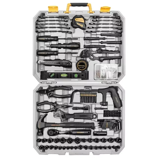 Whether you’re assembling furniture, working on garage construction, involved in woodwork, plumbing repairs, car repairs, outdoor fittings, or garden decoration, this 218-piece tool kit is your go-to solution. It provides everything you need for most small repairs and DIY projects, making it an indispensable addition to your toolkit.