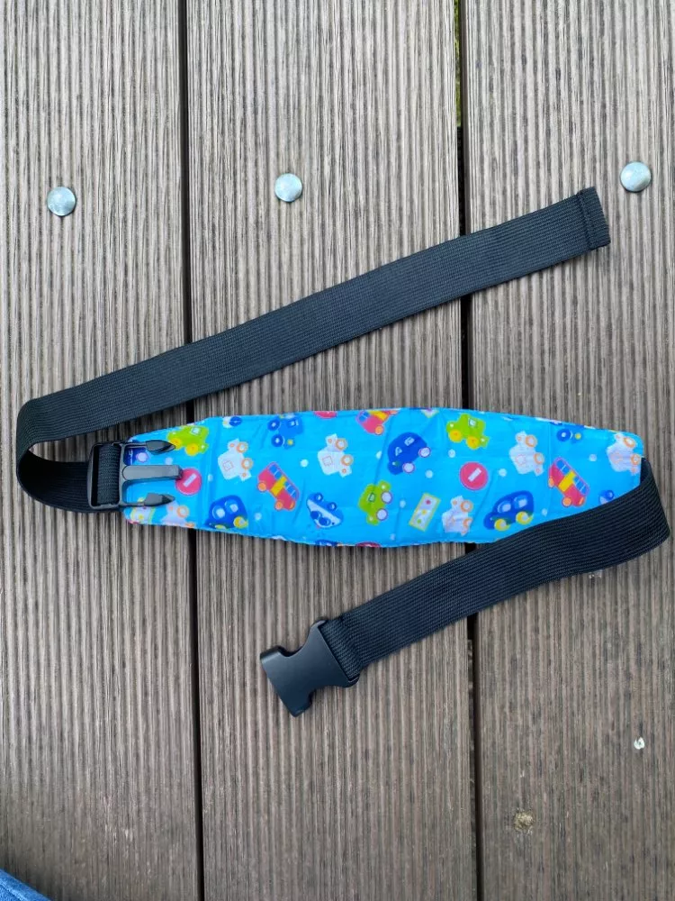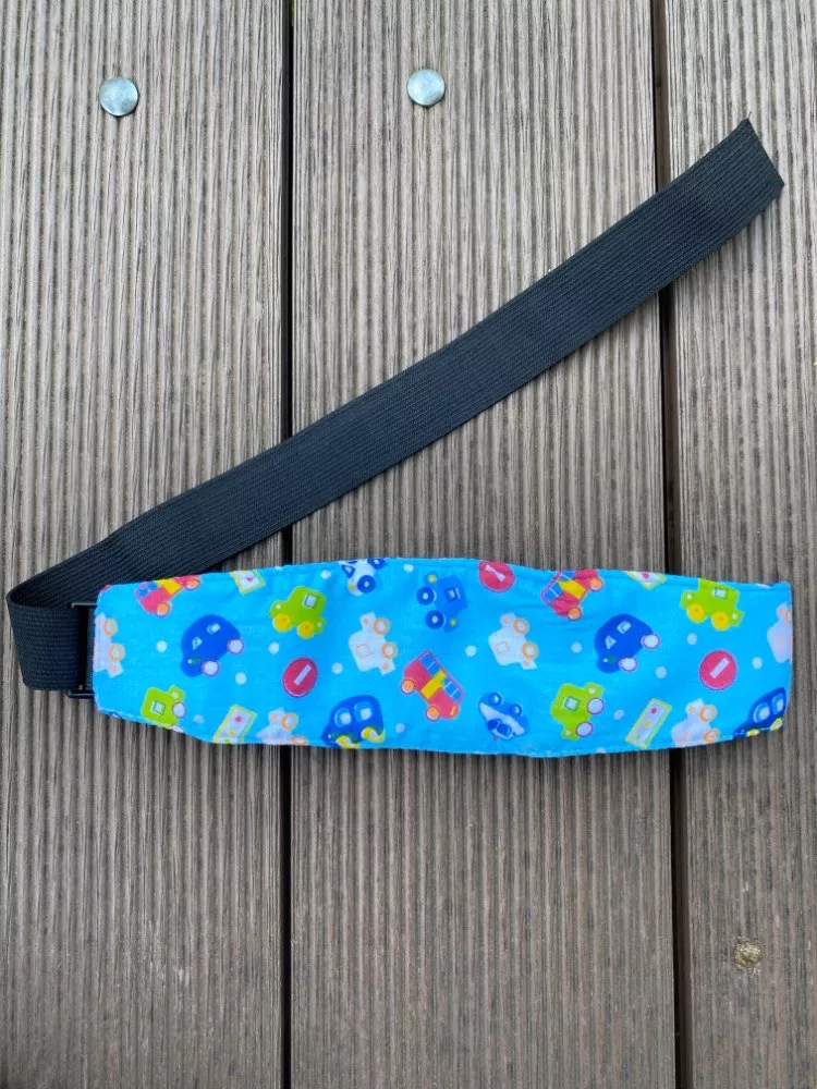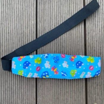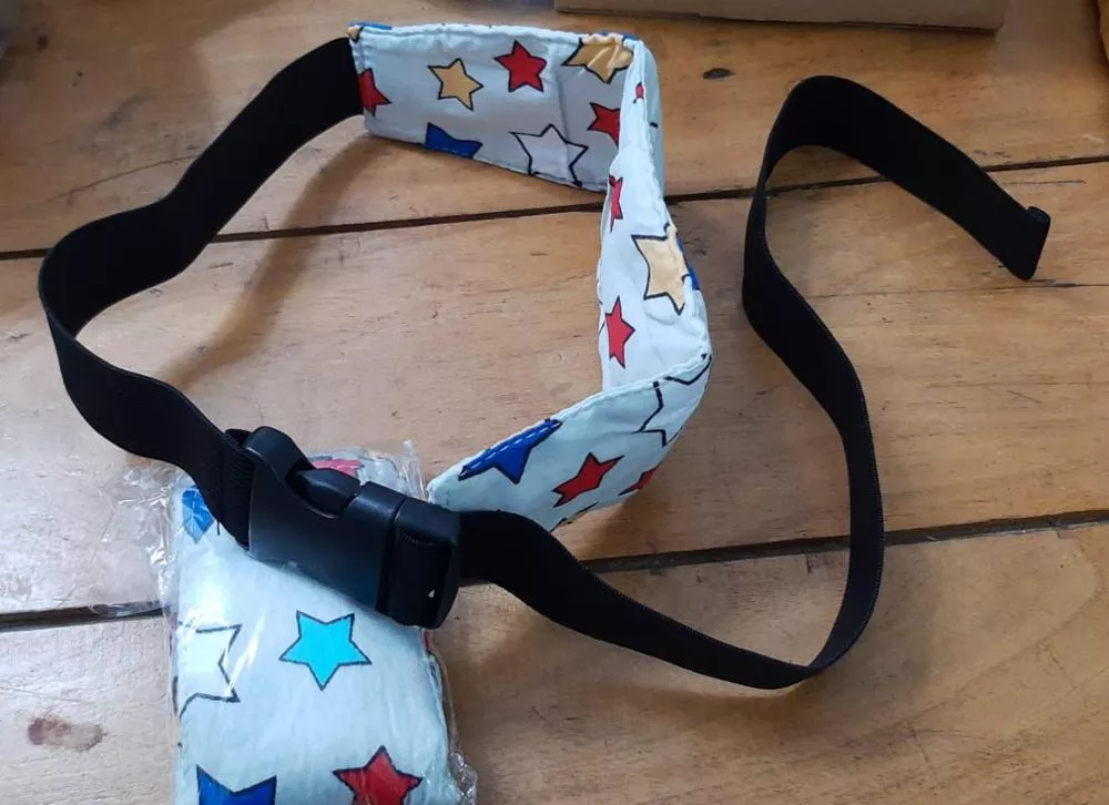 Need to put it on the car seat and when the child falls asleep just snap around their foreheads, otherwise it wakes them up. But definitely proves its purpose.