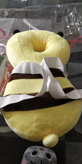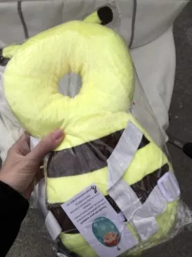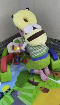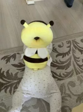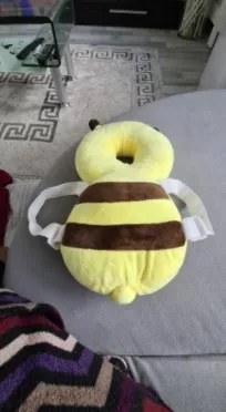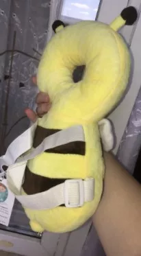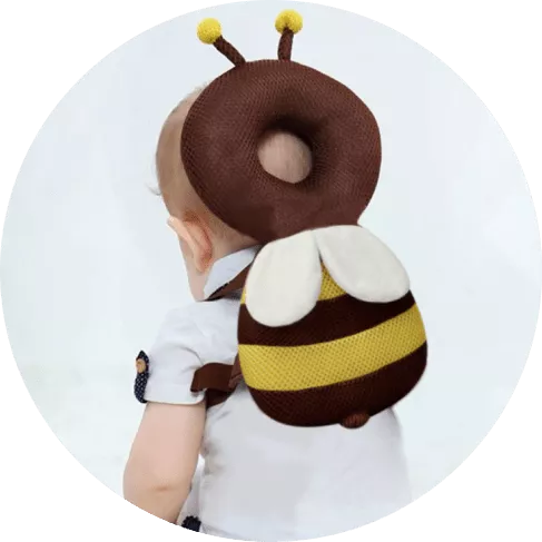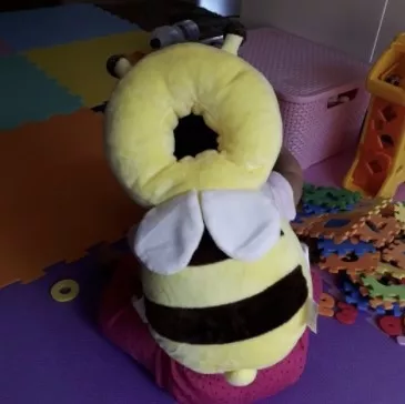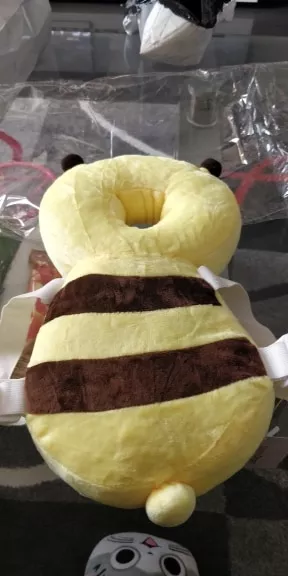 This little bee backpack has literally been a life saver. My 10 month old has been wearing it consistently for the past month and a half and it has saved him from smacking the back of his head on our tile floors too many times to count. He was a little interested in trying to pull it off when we first put it on, but now he wears it all the time and doesn’t seem to even notice it is there. Such a simple, cheap, and effective solution for a common baby issue.