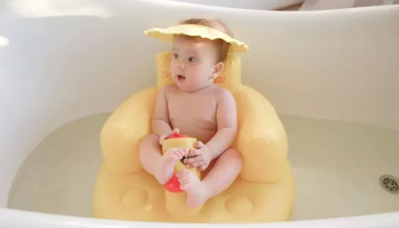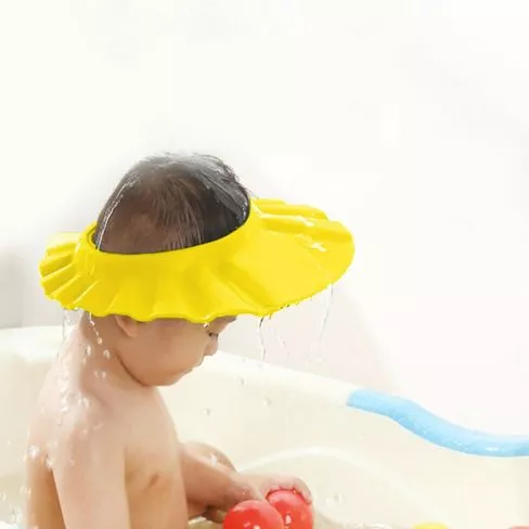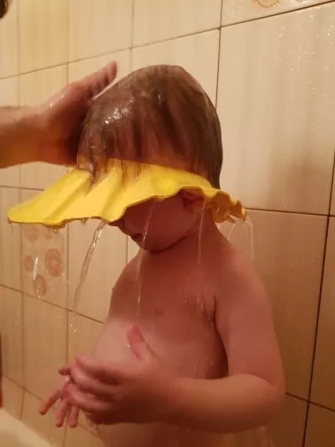 My 8 month old granddaughter was hating having her hair washed. I had an inflatable ducky hat for my daughter when she was a baby that kept the water out of her eyes. I found this product and ordered it. It works like a charm and the ear flaps are an added bonus as the water stays out of babies eyes and ears as well. She now loves being in the bath and hair washing is a breeze.