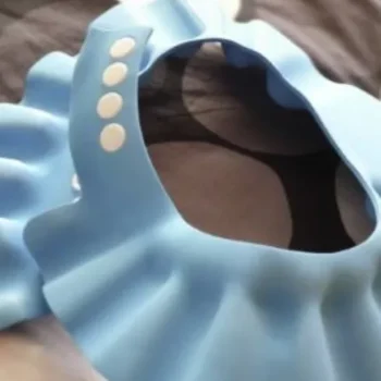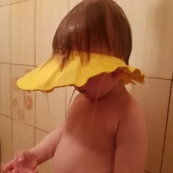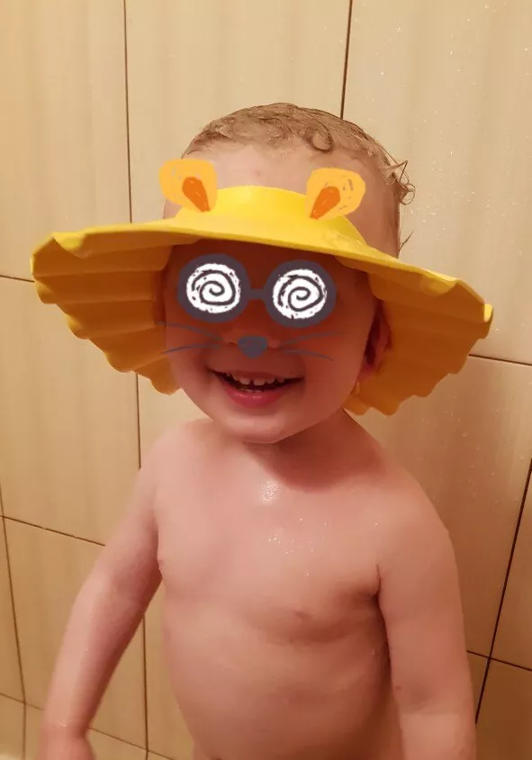 Excellent cap for keeping water off child’s face. I bought these for our 4 year old who kept screaming in the bath or shower when we’d wash her hair and water got on her face. I had low expectations of this product as it’s just a flimsy piece of foam. BUT it absolutely WORKS!!! My daughter is pleased and doesn’t scream any more. I snap it on the second to the last button and voila it’s magical. It looks silly but works perfectly. I definitely recommend this product to any parent with a child that struggles with water on their face while washing in the tub or shower.