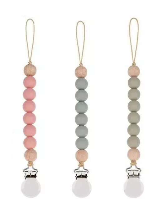 BPA-Free Silicone Pacifier Clip Chain with Wooden Beads