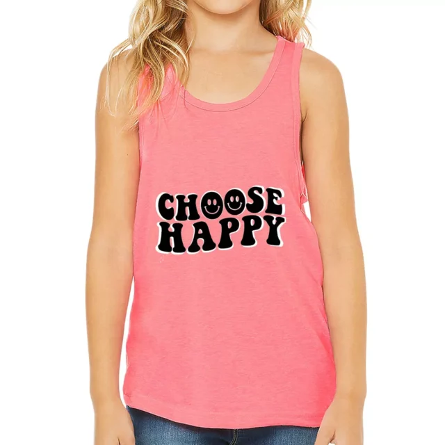 Choose Happy Kids’ Jersey Tank – Trendy Sleeveless T-Shirt – Printed Kids’ Tank Top
