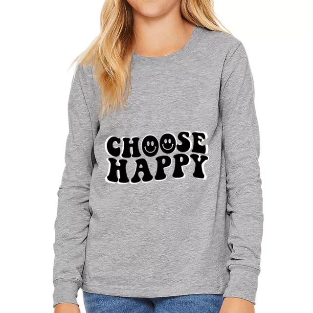 Choose Happy Kids’ Long Sleeve T-Shirt – Trendy T-Shirt – Printed Long Sleeve Tee