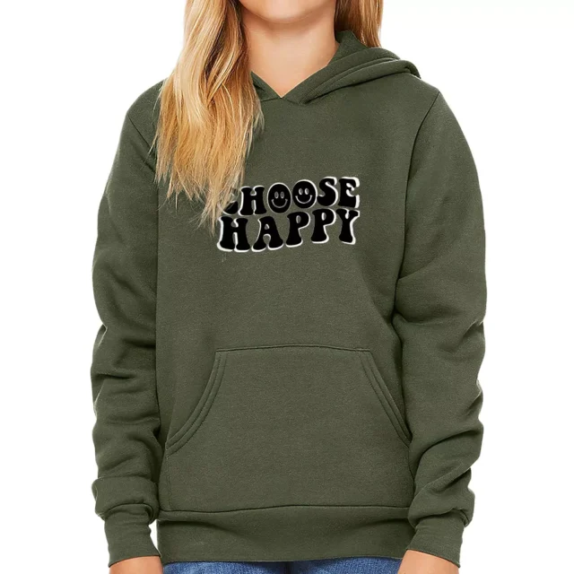 Choose Happy Kids’ Sponge Fleece Hoodie – Trendy Kids’ Hoodie – Printed Hoodie for Kids