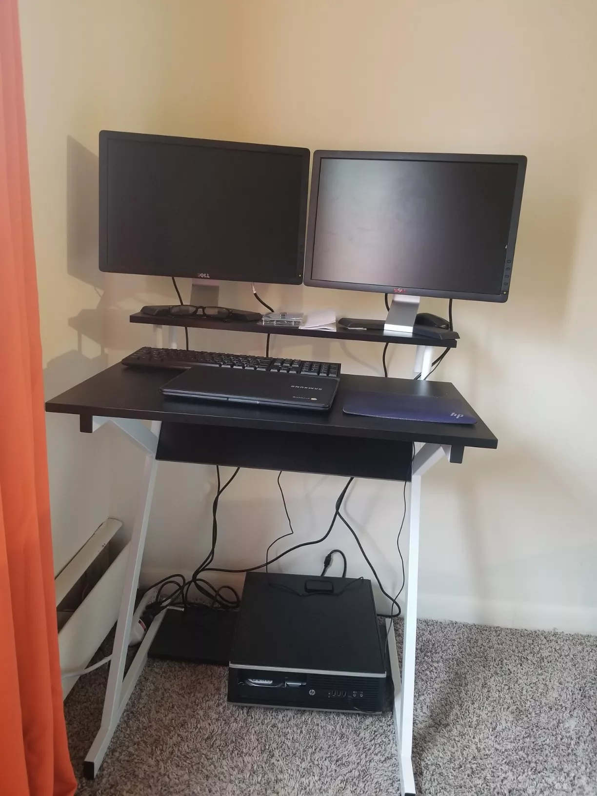 This desk's compact design is a lifesaver in my tiny apartment. The monitor shelf elevates my setup, making long work hours more comfortable, and the bottom shelf is perfect for storing books and other essentials. It was easy to put together and surprisingly sturdy. It’s stylish, functional, and exactly what I needed.