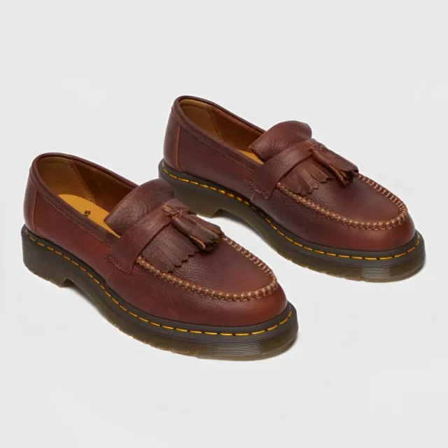 Crafted from 100% premium leather, these moccasins feature a rich brown color that pairs perfectly with jeans, chinos, or even a more relaxed suit. The leather lining adds a luxurious feel, while the rubber sole provides excellent grip and support for walking on both indoor and outdoor surfaces. With a simple, clean design and the signature Dr. Martens construction, these moccasins are made to stand out without sacrificing comfort.