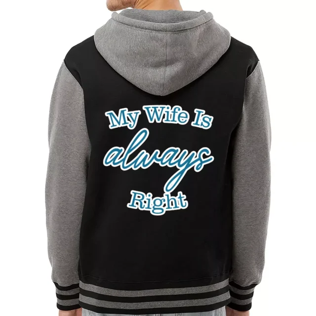 My Wife Is Always Right Varsity Hoodie – Cool Design Zip Hoodie – Trendy Hooded Sweatshirt