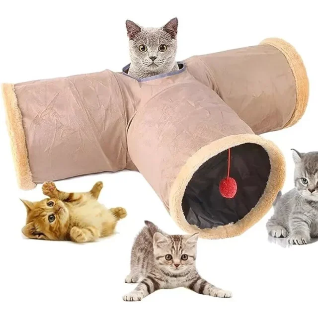 Introducing our latest addition for your feline friend – the Plush Cat Play Tunnel with Crinkle Sound & Dangling Ball. Designed with endless fun in mind, this collapsible cat tunnel offers a thrilling combination of hide-and-seek excitement and sensory stimulation that your pet will absolutely adore. Crafted from high-quality felt and featuring engaging crinkle paper, it’s not just a toy, but a haven of joy for your furry companion. Whether they’re frolicking, hiding, or simply relaxing, this tunnel is a perfect choice for cats of all ages and sizes.