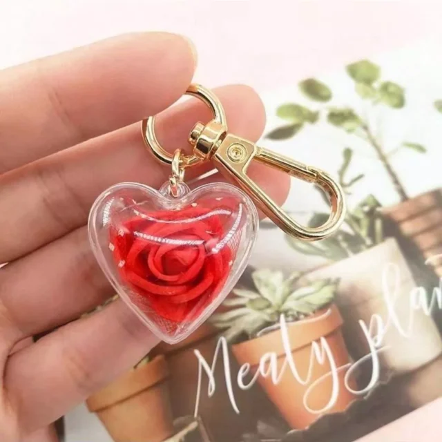 Add a touch of romance and elegance to your daily life with our Romantic Heart Shaped Rose Pendant Keychain. Crafted with exquisite detail and featuring a transparent eternal flower encased within a heart-shaped pendant, this keychain is more than just an accessory – it’s a symbol of everlasting love and beauty.
