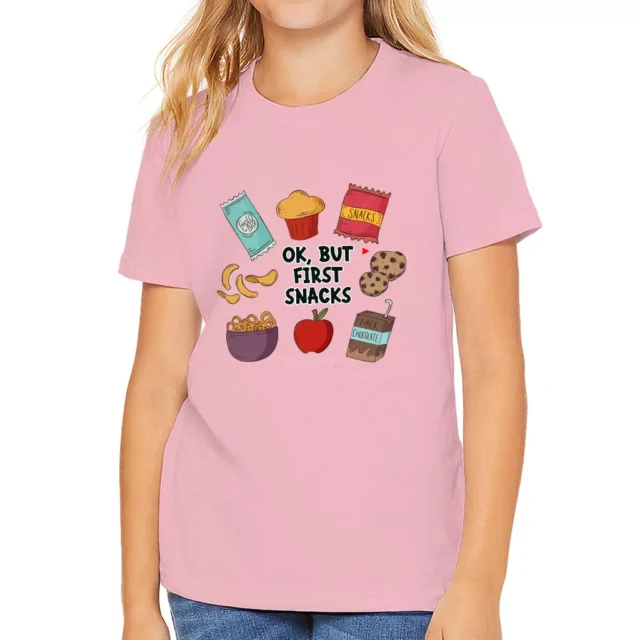 Snacks Kids’ T-Shirt is no ordinary piece of clothing. Its crew neck and short
