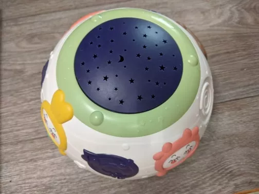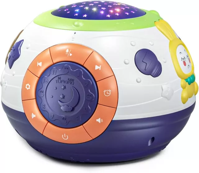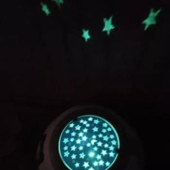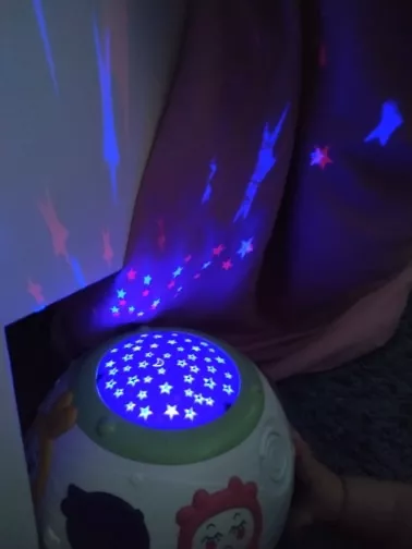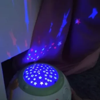 This is an uncomplicated night light projector that does as advertised. There are several options of color combinations and it's fun for toddlers to explore them. I do wish the dome had been made of a sturdier plastic as my toddler crinkled it immediately (but thankfully, it can be fixed and does return to its shape).