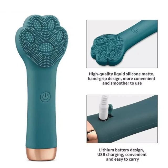 USB Rechargeable Sonic Facial Cleansing Brush with Cartoon Cat Paw Design