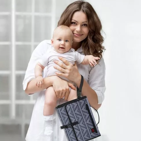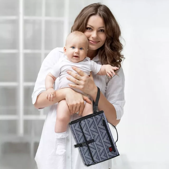 I got this for our second child and I LOVEEEEE it! This changing pad is a quality one – the material feels SUPER NICE and SOFT to put the baby on and I have experienced other ones in the past that are very ‘plasticity’. I bought this for myself and I will definitely recommend to all my friends/ buy as a gift. The design is modern and stylish. All the compartments are in a good size, so I can just put the few things I need when we go out for errands. The changing pad it self is a good size so we will be able to use it for the long run plus very easy to wipe and clean off.