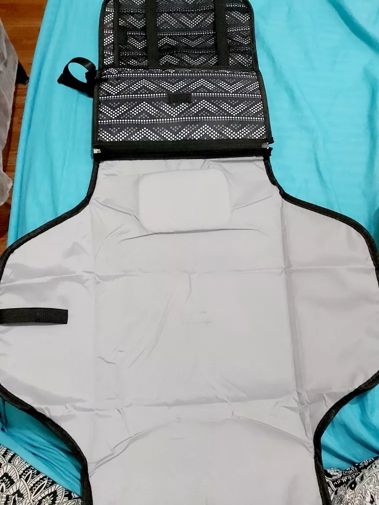 I was thinking to buy single use and disposable pad, but it wastes money if I buy too much and don't use all. this diaper changing pad is reusable, great for travel, pretty light, and easy to fold and carry. no need to worry about the dirtiness of the changing table. easy to clean, just use the wet towel to wipe it down. I can use it anywhere, and I always carry it when I go out with my baby. I can easily store it at my diaper backpack or just hang in at the handle of car seat.